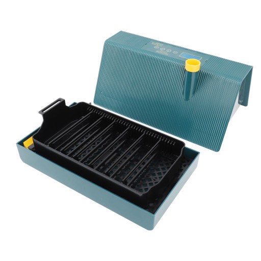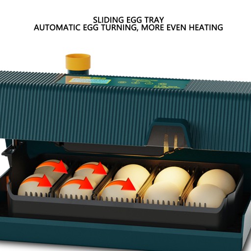 - Funkcja: Sterowanie jednym przyciskiem, podwójny wyświetlacz temperatury i wilgotności, automatyczne obracanie jaj, wyświetlanie dni inkubacji, odliczanie obracania jaj, funkcja oświetlenia jaj, wbudowane oświetlenie otoczenia, regulowana tacka na jajka, konstrukcja otworu wentylacyjnego.