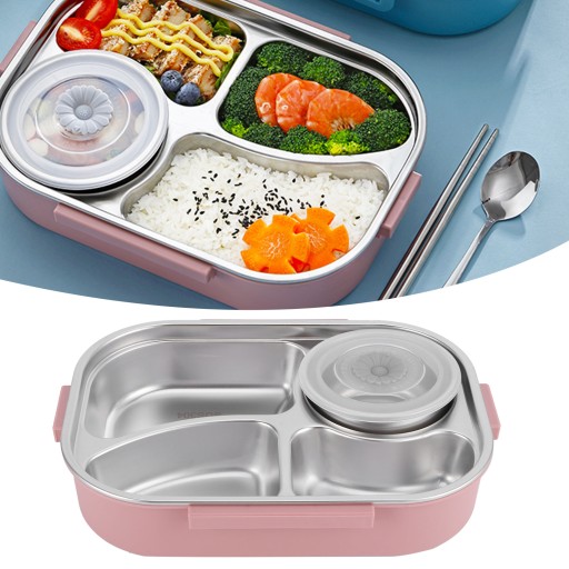 3. Pudełko na lunch z 4 kratkami, posortowane i umieszczone, nie boi się zapachów, zintegrowane formowanie, łatwe i wygodne w czyszczeniu.