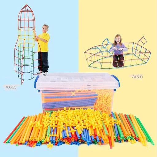 300 sztuk słomek i łączników Budownictwo Zabawka budowlana Dla dzieci Budynek Fort