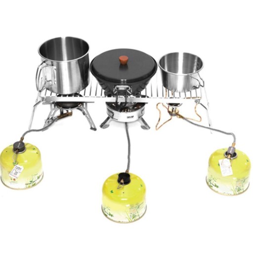 Użyj grilla kempingowego do gotowania na otwartym ogniu z dostępnymi naczyniami do gotowania na świeżym powietrzu, aby przygotować pyszne uczty na świeżym powietrzu, gorącą kawę, stosy naleśników, jajka sadzone i chrupiące.