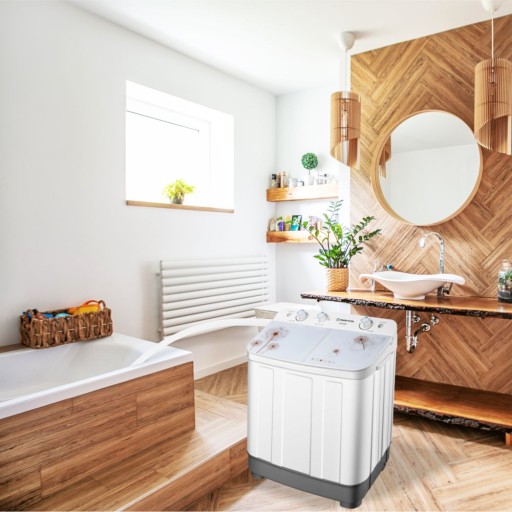 ☑️Niezależnie od tego, czy mieszkasz w małym apartamencie, studiu czy domu, nasza pralko-suszarka o małych gabarytach doskonale zmieści się w każdym pomieszczeniu. Jej kompaktowy design pozwala na łatwe umieszczenie jej nawet w najmniejszych przestrzeniach, takich jak łazienka, spiżarnia, kuchnia lub domek na działce.