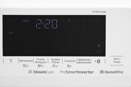 Pralko-suszarka BEKO HTV8712XW o szerokości 60 cm i głębokości 54 cm. Urządzenie posiada technologię Steam Cure oraz AquaFusion. Maksymalna prędkość wirowania wynosi 1400 obr/min.