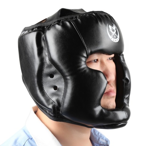 ✅1 * Kask bokserski typu zamkniętego Bokserska osłona głowy Thai Kick Brace Ochrona głowy do swobodnej walki Taekwondo (czarny)