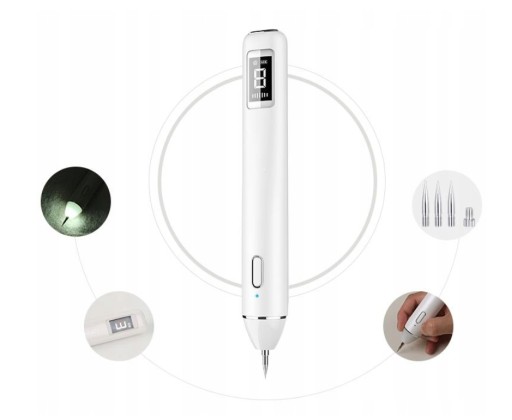 Wybór mola punktu przekładni: krótkie naciśnięcie przycisku (ON/OFF), przełączanie biegów zgodnie z 1-8, wybierz odpowiedni bieg, naciśnij i przytrzymaj przycisk (OUT), aby pracować, zielona lampka wskaźnika świeci się, ręka mocno trzyma korpus pióra, delikatnie skanuje w przód iw tył na skórze, praca nie może trwać długo w jednym miejscu, długi czas pracy przez 2 minuty automatycznie przejdzie w tryb czuwania.