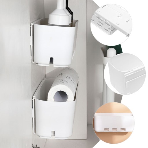To pudełko można zawiesić pod zlewami kuchennymi i wewnątrz szafek lub za drzwiami, aby zapewnić bardziej dyskretne przechowywanie.