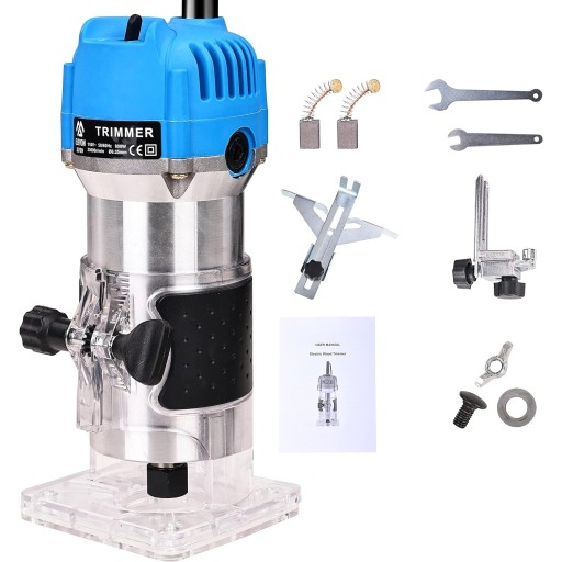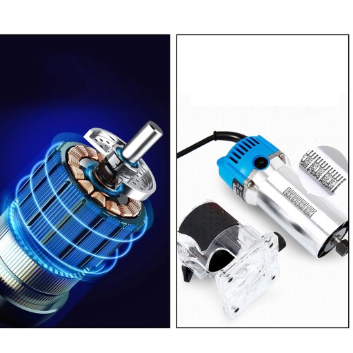 - Router ma moc wejściową 800 W przy 30 000 obr./min, złącze 1/4 cala i napięcie 220 V, co zapewnia wystarczającą moc do okablowania i przycinania.