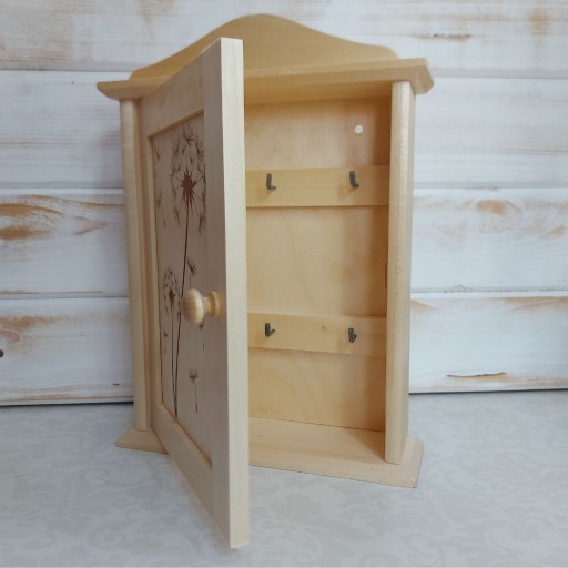 Drewniana szafka na klucze - piękna i praktyczna dekoracja do Twojego wnętrza z grawerem dmuchawca