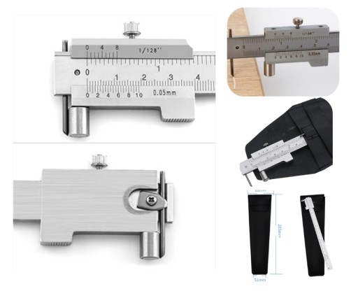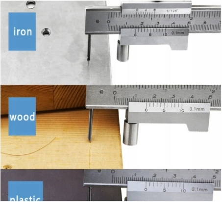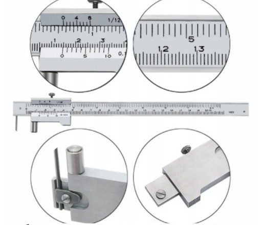 Suwmiarka traserska z rysikiem przeznaczona do dokładnych pomiarów jak i trasowania konturów i kształtów na materiałach, na przykład na drewnie, metalu lub plastiku.