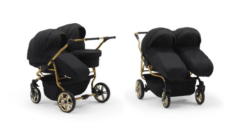 Przedmiotem aukcji jest wózek głęboko-spacerowy DUET LUX GOLD na złotym stelażu z naszej najnowszej kolekcji przygotowywanej na nowy rok.