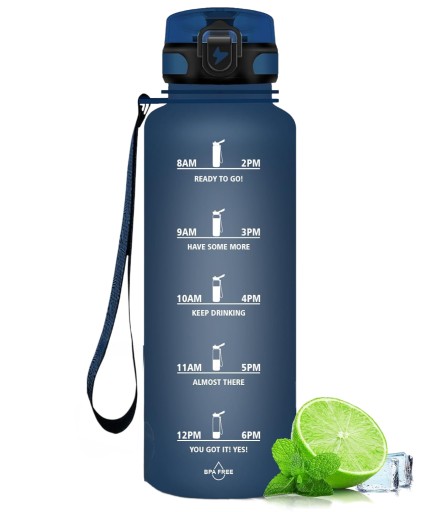 - Butelka na wodę ze znacznikiem czasu zawsze przypomina o konieczności wypicia wystarczającej ilości wody w ciągu dnia, aby zapewnić sobie odpowiednią ilość płynów.