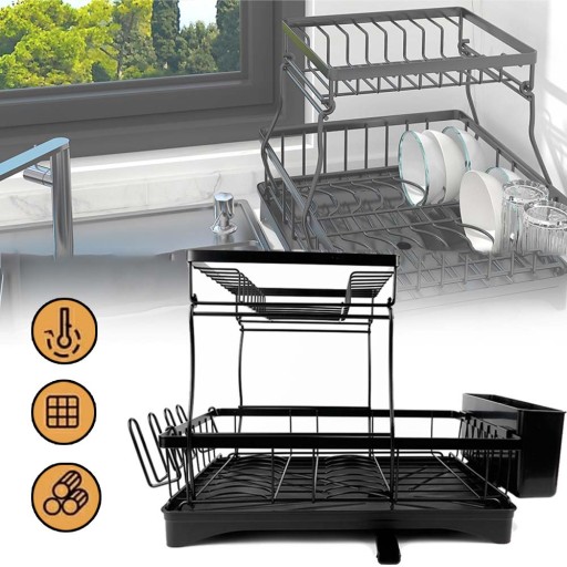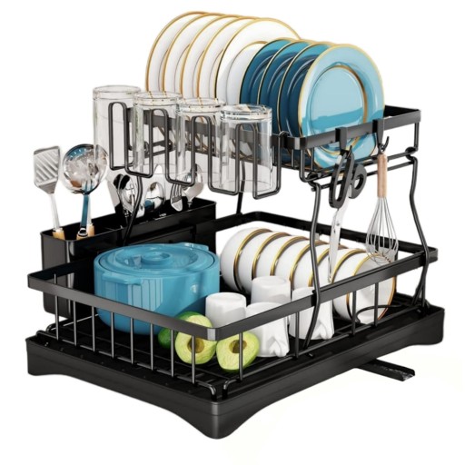 - Nasz stojak do suszenia naczyń ma dwuwarstwową, wyjmowaną konstrukcję, która zwiększa przestrzeń na blacie, nie zajmując zbyt wiele miejsca w kuchni.