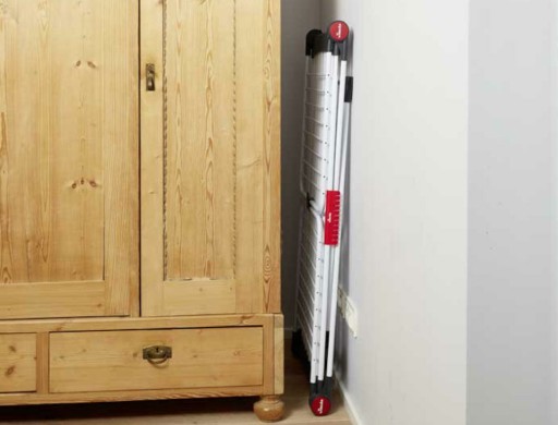 Dodatkowym wyposażeniem suszarki jest sprytny wieszak na bieliznę. Szczególnie na najdrobniejszą, która lubi się gubić - np. skarpetki. Suszarka na pranie wyposażona została także w dodatkową blokadę skrzydeł oraz zabezpieczenie przed przypadkowym złożeniem.