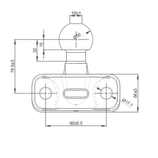 - Wysokość od osi otworów do środka kuli: 80 mm