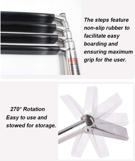 3-stopniowa teleskopowa drabina do łodzi ze stali nierdzewnej – składana drabina do basenu / jachtu morskiego, 150 kg