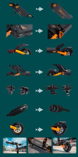 Innowacyjna konstrukcja składana zapewnia płynne przejście z jazdy do przenoszenia w kilku sekundach, udostępniane w ograniczonych przestrzeniach, dzięki czemu jest wygodnym i bezstresowym w transporcie, jednocześnie w transporcie publicznym, jak iw urządzeniu prywatnym.