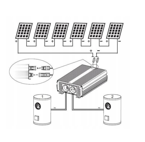 Przetwornica służy TYLKO i WYŁĄCZNIE do zasilania urządzeń "rezystancyjnych" czyli grzałki. NIE można podłączać elektroniki, silników itp.
