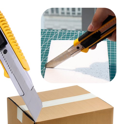 Ostrza łamane są niezastąpione przy przecinaniu różnych materiałów, takich jak gęsty karton, papier, powłoki budowlane czy folia polietylenowa.