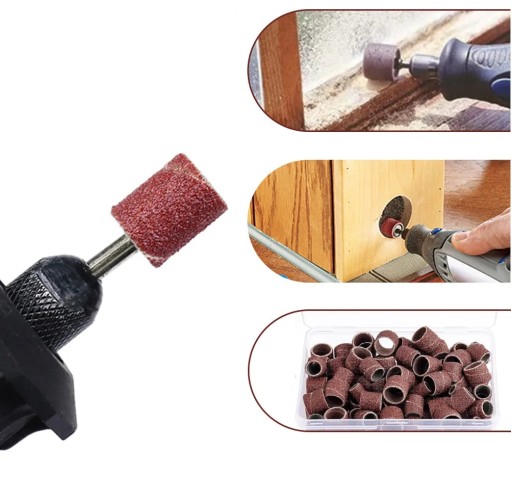 - W zestawie znajduje się szeroki wybór tulejek ściernych o średniej gradacji, co pozwala na dokładne i równomierne wykończenie powierzchni.
