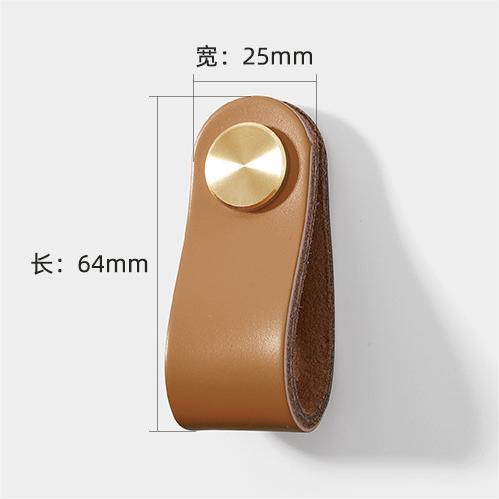 UCHWYT MEBLOWY GAŁKA SKÓRZANA BRĄZOWA 64mm