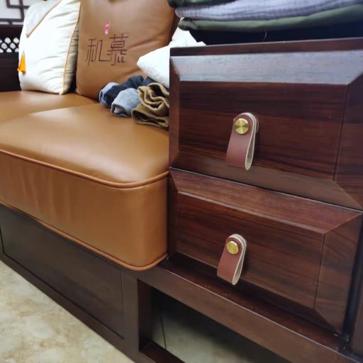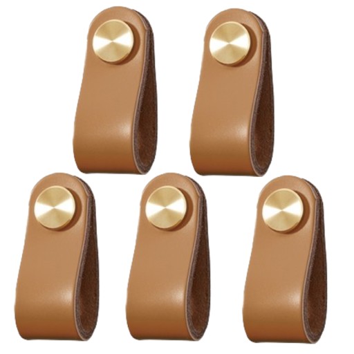 Gałka meblowa wykonana jest z wysokiej jakości skóry ekologicznej w głębokim, pięknym odcieniu brązu z dodatkiem złotego okucia.