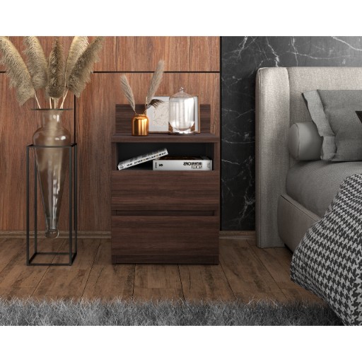 Prezentujemy Szafkę nocną Dąb Wenge z 2 szufladami oraz półką, idealną do Twojego sypialni.