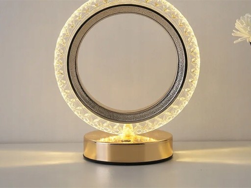 Lampa nocna kryształowa lampka stołowa LED pierścień biurkowa nowoczesna