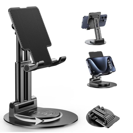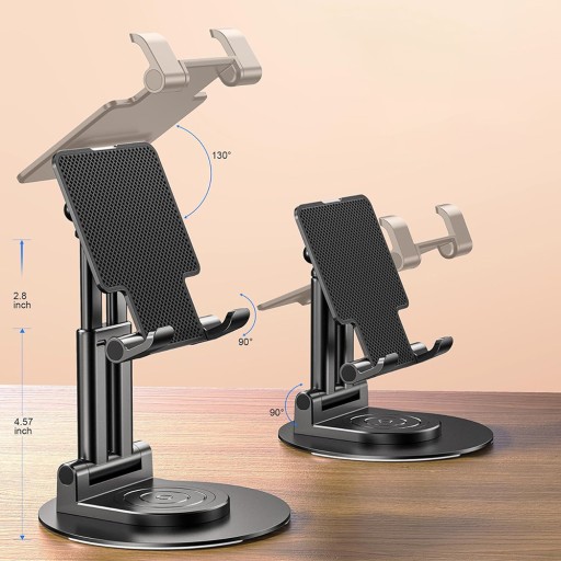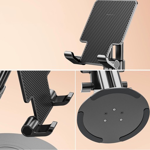 - Ten stacjonarny uchwyt na telefon ma regulowany kąt i wysokość od 12 do 16 cm.