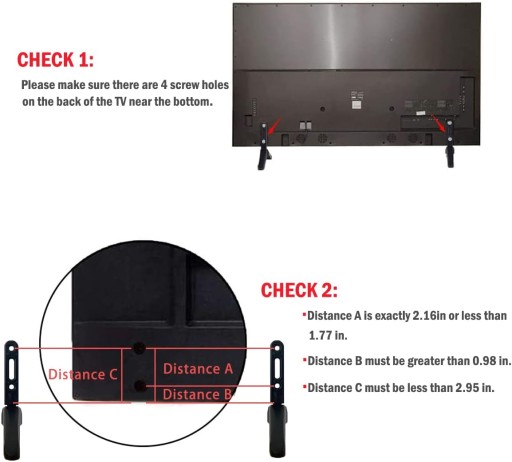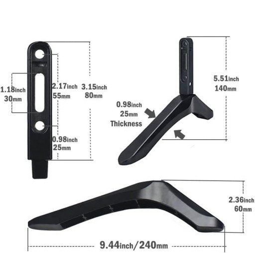 Uwaga: ta nóżka do telewizora nie pasuje do wszystkich telewizorów. Upewnij się, że z tyłu telewizora w pobliżu podłogi, po lewej i prawej stronie, znajdują się dwa otwory montażowe, oddalone od siebie o dokładnie 5,5 cm lub mniej niż 4,5 cm. Uniwersalny: Zamienna podstawa do telewizora stołowego pasuje do telewizorów Sony, LG, Sharp, Insignia, Vizio, Haier, Toshiba, Sharp, Element, TCL, Westinghouse. Łatwa instalacja: Prosta instalacja telewizora zajmuje tylko kilka minut i jest dostarczana z niezbędnym sprzętem.