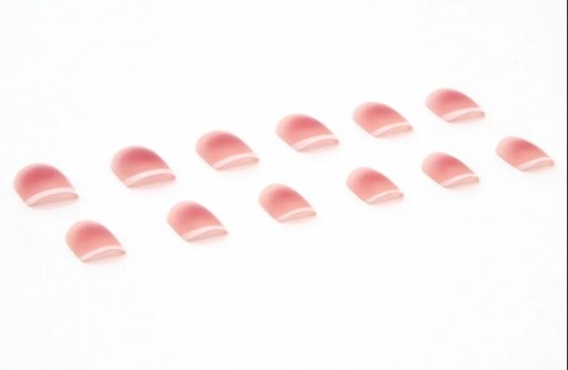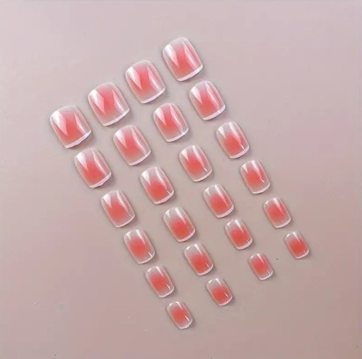 ✔️ Tipsy gotowe krótkie kwadratowe. Naklejane paznokcie żelowe w kolorze delikatnego różu ze zdobieniem aura nails. Doklejane paznokcie różowe. Paznokcie doczepiane klasyczny french.