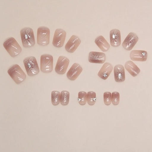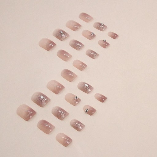 ✔️ Zestaw zawiera 24 szt. gotowe tipsy zdobione w kształcie krótkiego kwadratu.