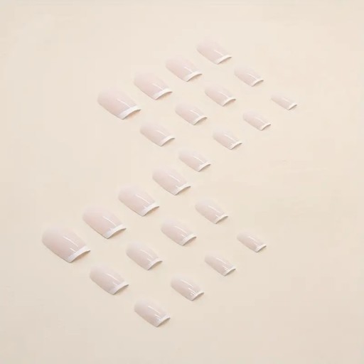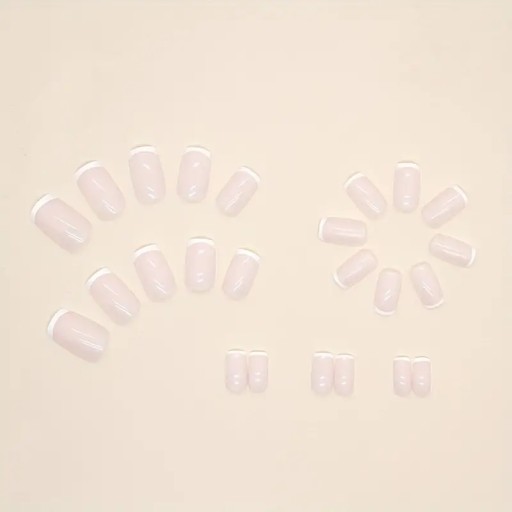 ИСКУССТВЕННЫЕ НОГТИ КОРОТКИЕ КВАДРАТНЫЕ НАСАДКИ КЛАССИЧЕСКИЙ ФРАНЦУЗСКИЙ САМОКЛЕЯЩИЕСЯ 24ШТ.