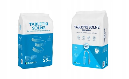 Tabletki solne w 25 kg worku wyprodukowane przez firmę Ciech przeznaczone są do uzdatniania wody.
