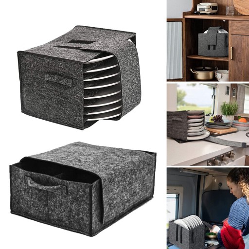 🔵🔵 [Redukcja hałasu] brak grzechotania podczas jazdy, stojak na tace kempingowe, który może pomieścić 8 talerzy, a torba na kubki mieści 6 kubków, praktyczny filcowy organizer do szuflad, szafek i półek, idealny dla wczasowiczów lub wczasowiczów.