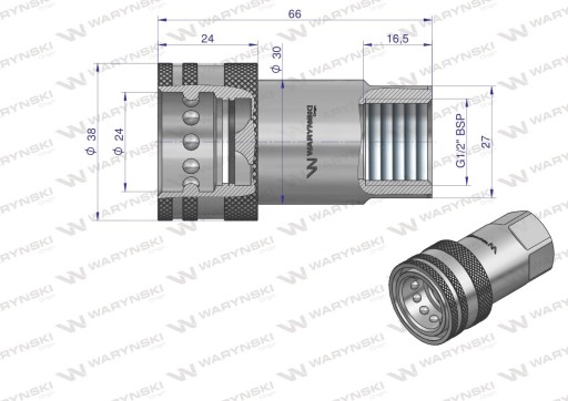 SZYBKOZŁĄCZE HYDRAULICZNE GNIAZDO G1/2" BSP GWINT WEWNĘTRZNY ISO 7241-A WARYŃSKI