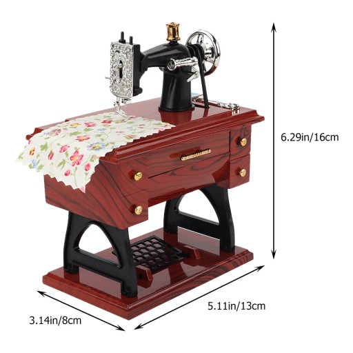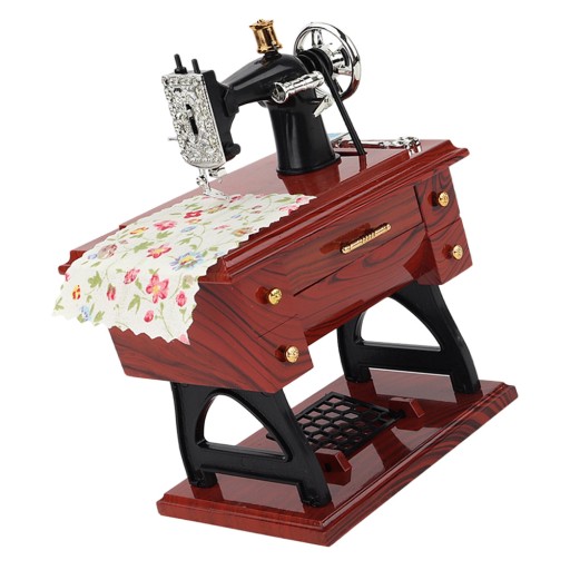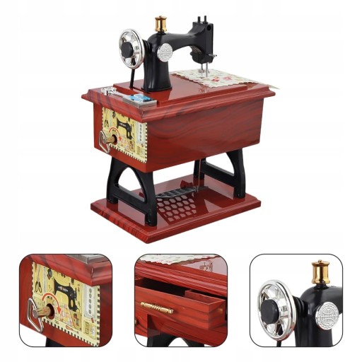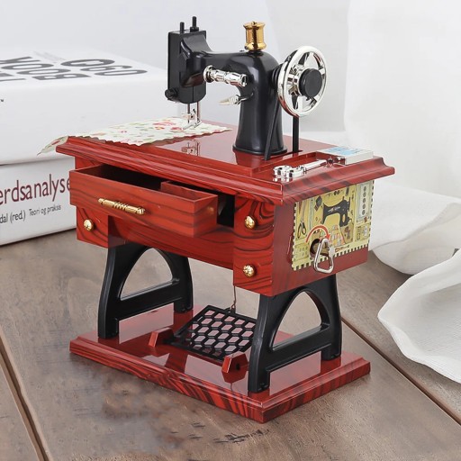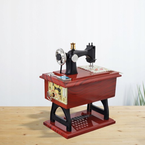 Mechaniczna pozytywka w kształcie maszyny do szycia
