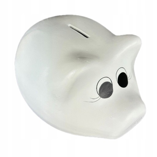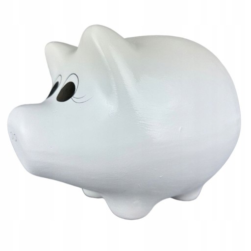 Bardzo duża skarbonka do przetrzymywania oszczędności. Wykonana z ceramiki. Świnka ma otwór - szczelinę na górze do wrzucania pieniążków. Jedynym sposobem na wyciągnięcie drobnych jest rozbicie.