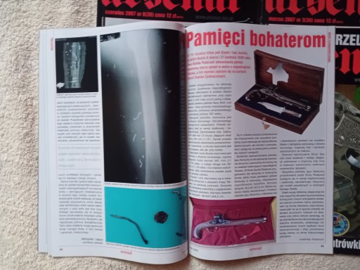 Sprzedam : miesięcznik Magazyn strzelecki Arsenał. Numery 2-7 / 2007 r. Łącznie 6 numerów. Wydawca : DVC Sp. z o.o. Stron średnio 74. Stan dość dobry. Rogi niektórych kartek i okładek lekko zagięte, Obrzeża okładek z przetarciami. Niewielkie ślady wilgoci w postaci sklejeń ostatnich kartek z okładką. Zdjęcia przedstawiają stan faktyczny.