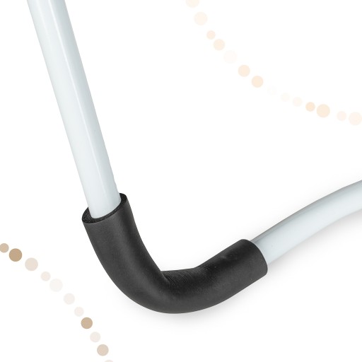 Blat jest wykonany z wysokiej jakości tworzywa i nie posiada ostrych brzegów, aby zapewnić stu procentowy komfort użytkowania. Dodatkowo we wnęce wbudowane są otwory, które umożliwią wygodne przełożenie kabli oraz otwór na kubek kawy czy herbaty.