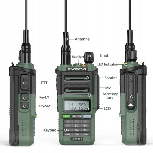 Radio Baofeng UV-9R PRO to profesjonalne radio amatorskie (z zaprogramowanymi amatorskimi kanałami PMR) idealne na rodzinne wycieczki, spacery itp. Z możliwością podwójnego oglądania.