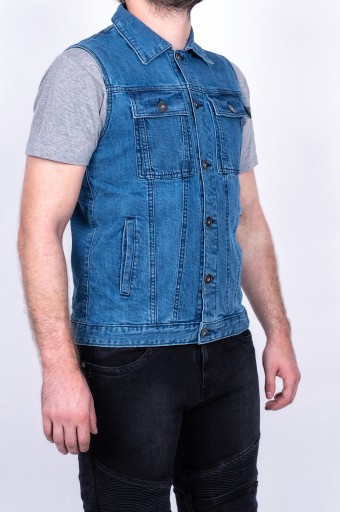 Kamizelka motocyklowa męska jeansowa. Doskonały wybór dla każdego motocyklisty, któremu design'owo nie pasuje kamizelka skórzana.