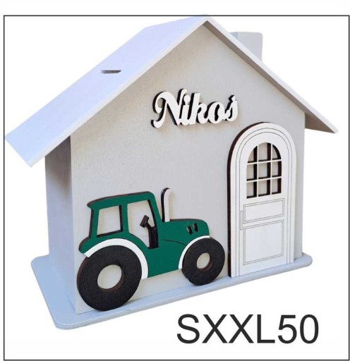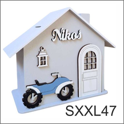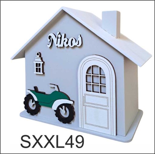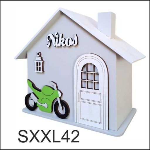 Большой деревянный дом-копилка с квадроциклом подарок для мальчика персонализированный