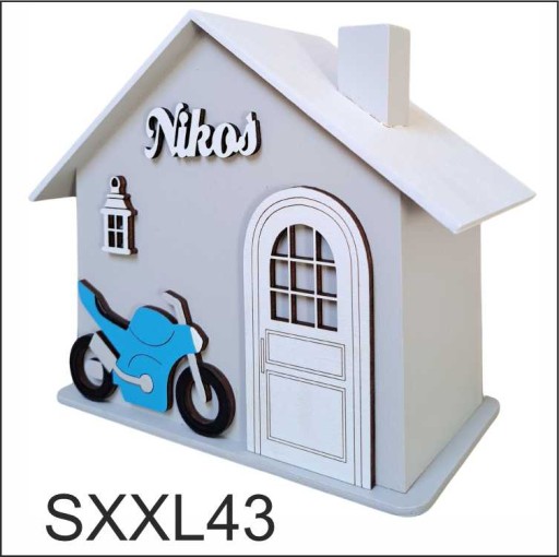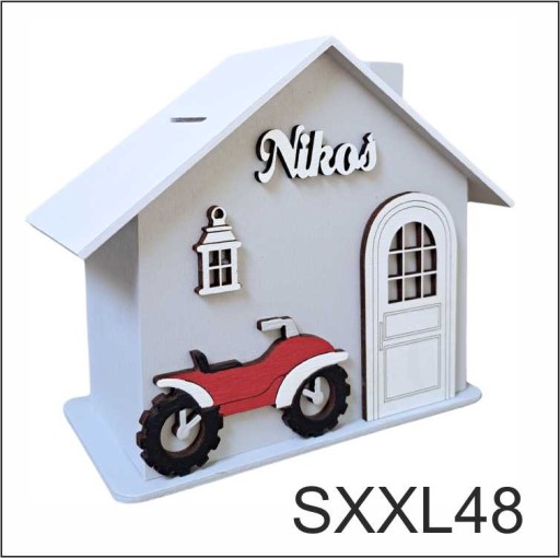 DUŻA drewniana skarbonka domek z quadem prezent dla chłopca personalizowana