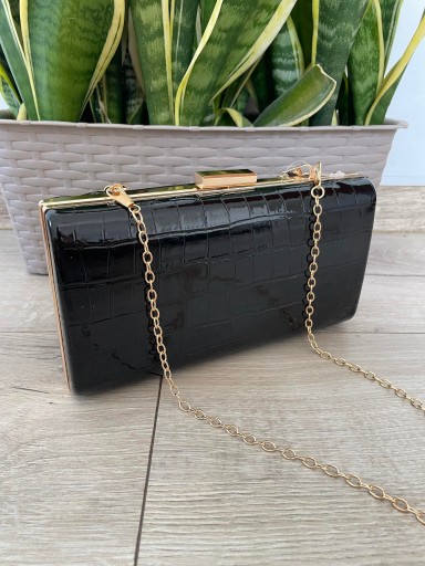 Efektowna, bardzo elegancka torebka kopertówka damska o niezwykle bezpretensjonalnym designie, wykonana z błyszczącej skóry ekologicznej. Została stworzona jako nieodzowny element wieczorowej kreacji. Sztywny fason gwarantuje utrzymanie przez torebkę fascynującego kształtu. Zamykana na zatrzask, pomieści różnego rodzaju drobiazgi, będąc doskonałym dodatkiem na imprezy, komunie, wesela lub po prostu na wieczór.
