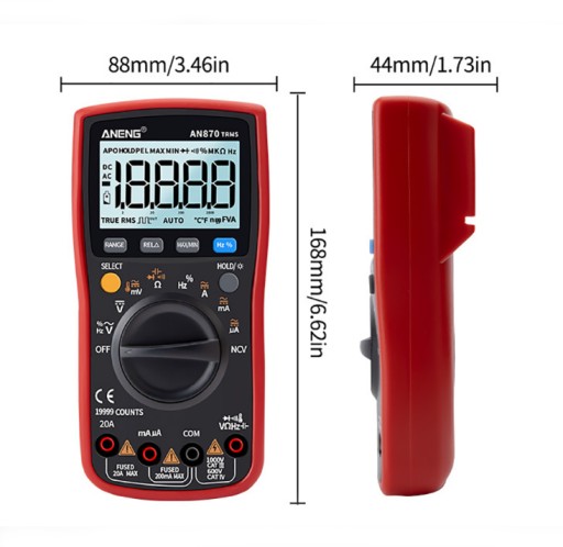 Zakres napięcia pomiarowego: 19.999mV/1/199 mv/1.9999V/19.999V/199.99V/750ACV(1000DCV)
