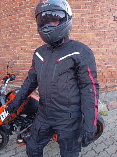 - zainstalowane protektory CE (plecy, barki, łokcie) z możliwością wyjęcia/wymiany