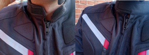 Stójka w kurtce zapinana na rzep, dzięki czemu nie wieje pod szyja !