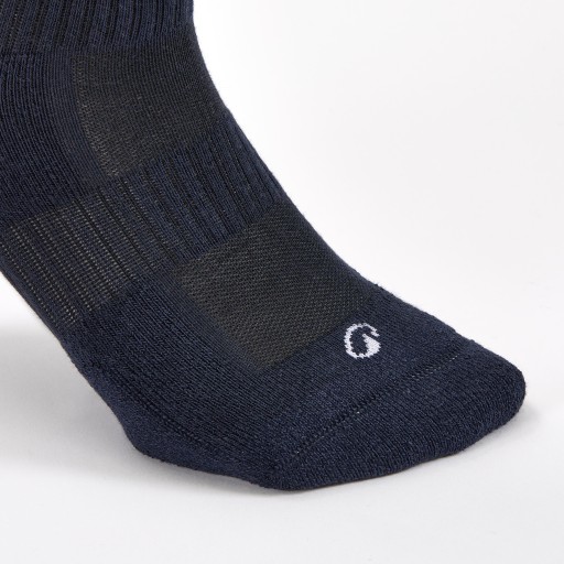 Zaprojektowane dla średnio zaawansowanych tenisistów. Wygodne i wytrzymałe, nie przesuwają się podczas gry. Sportowa skarpeta z frotte na całej długości stopy: większa wygoda i pochłanianie wilgoci. Strefa wentylacji w górnej części. Ściągacz w śródstopiu zapewnia dobre trzymanie. W zestawie 3 pary.