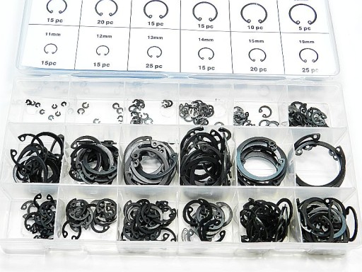 Zestaw 300 pierścieni wewnętrznych Seeger'a w rozmiarach 3 - 32mm. Charakterystyka produktu 18 różnych rozmiarów pojemnik z tworzywa sztucznego z praktyczymi przegródkami Zawartość zestawu 3 mm - 20 sztuk 4 mm - 10 sztuk 5 mm - 15 sztuk 6 mm - 25 sztuk 8 mm - 15 sztuk 9 mm - 20 sztuk 11 mm - 15 sztuk 12 mm - 15 sztuk 13 mm - 25 sztuk 14 mm - 15 sztuk 15 mm - 20 sztuk 19 mm - 25 sztuk 20 mm - 15 sztuk 22 mm - 20 sztuk 25 mm - 15 sztuk 26 mm - 15 sztuk 28 mm - 10 sztuk 32 mm - 5 sztuk