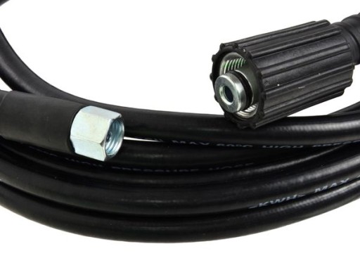 Wąż 10m do myjki wysokociśnieniowej Wąż do myjki wysokociśnieniowej mocowany na gwint 22 mm. Dzięki zastosowaniu typowych gwintów (14mm od strony pistoletu oraz 22 mm od strony myjki) wąż pasuje praktycznie do wszystkich myjek i pistoletów ciśnieniowych dostępnych na polskim rynku. Cechy produktu: starannie wykonany wąż o długości 10m maksymalne ciśnienie robocze wynosi 400 bar możliwość pracy z wodą osiągającą 60°C wyposażony w typowe dla większości myjek ciśnieniowych gwinty 14 i 22 mm