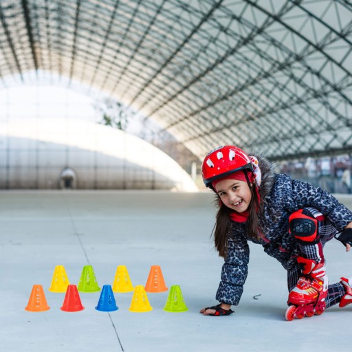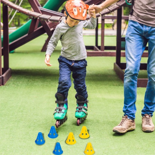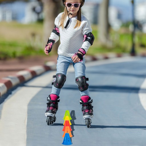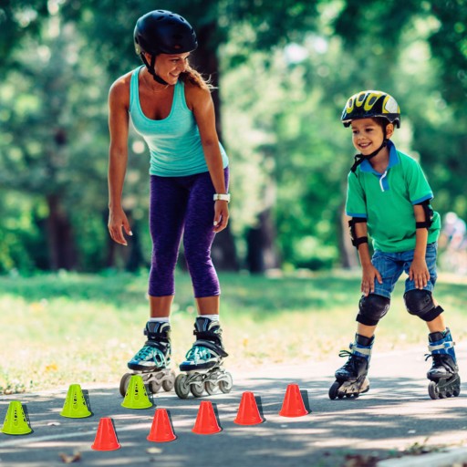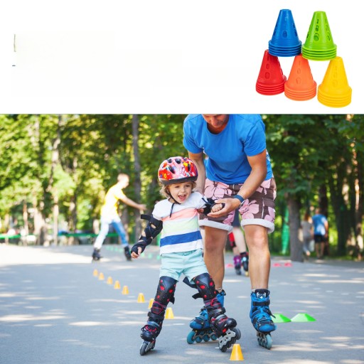 ✅i jest umieszczony w kształcie stożka, bardzo stabilny. Możesz ustawić stosy rolek razem z dziećmi w rozległym parku, aby ćwiczyć jazdę na rolkach.